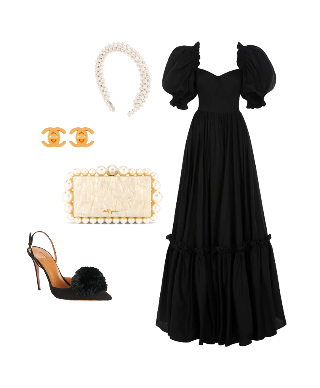 The LDB just can’t be beaten — think of it as the ultimate plus one to your party invite. Whether it be to the office party, cocktails with friends or a NYE ‘do, make an entrance in black this season. Stylish Influencers Raeann Langa, Abisola Omole and Candice Huffine have all made a case for the ever-chic LDB of late, and we can’t get enough of Nicola Coughlan’s Emilia Wickstead number. A black one piece will guarantee you’ll be the best dressed guest, no matter the destination. Pairing with a pearl hair accessory nods to the ladylike trend seen on the runways of Simone Rocha and Giambattista Valli for AW 22. Mirror the detail with Cult Gaia’s show stopping clutch — the only arm candy you need this season. And nothing says luxe like Chanel’s interlocking C’s — pair the earrings with a red lip and your favourite tipple. Negroni Sbagliato with prosecco in it, anyone?