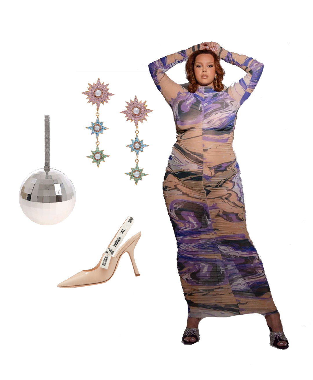 Barbie Ferreira proves bodycon and curves are a match made in heaven in her red dress and matching gloves. Channel her look with this figure-hugging marbled maxi. You can always count on It brand Kai Collective to come through with the party-perfect goods, and this dress is no exception. Slicked back hair would allow this showstopper to take centre stage – think of this as special occasion dressing with a fashion-forward edge. Keep shoes neutral but no less stylish, allowing Lulu Guiness’ D-I-S-C-O bag to dazzle. An ensemble worthy of its own Insta post, IOH.