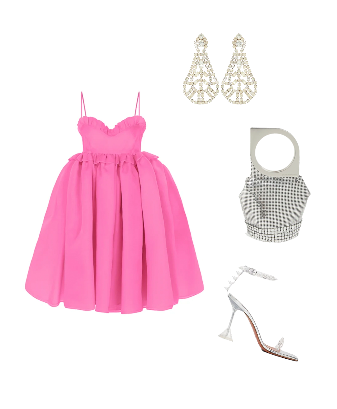 There’s something Y2K-esque about a bold pink — it encourages a stop-and-stare moment. You can’t get better than trending brand Selkie, their dreamy dresses the pinnacle of girly romance. When it comes to accessories, if it’s covered in ruffles, bows, rhinestones or crystals – it’s a winner. Double style points awarded if you can incorporate a bow, another standout runway trend of the season.